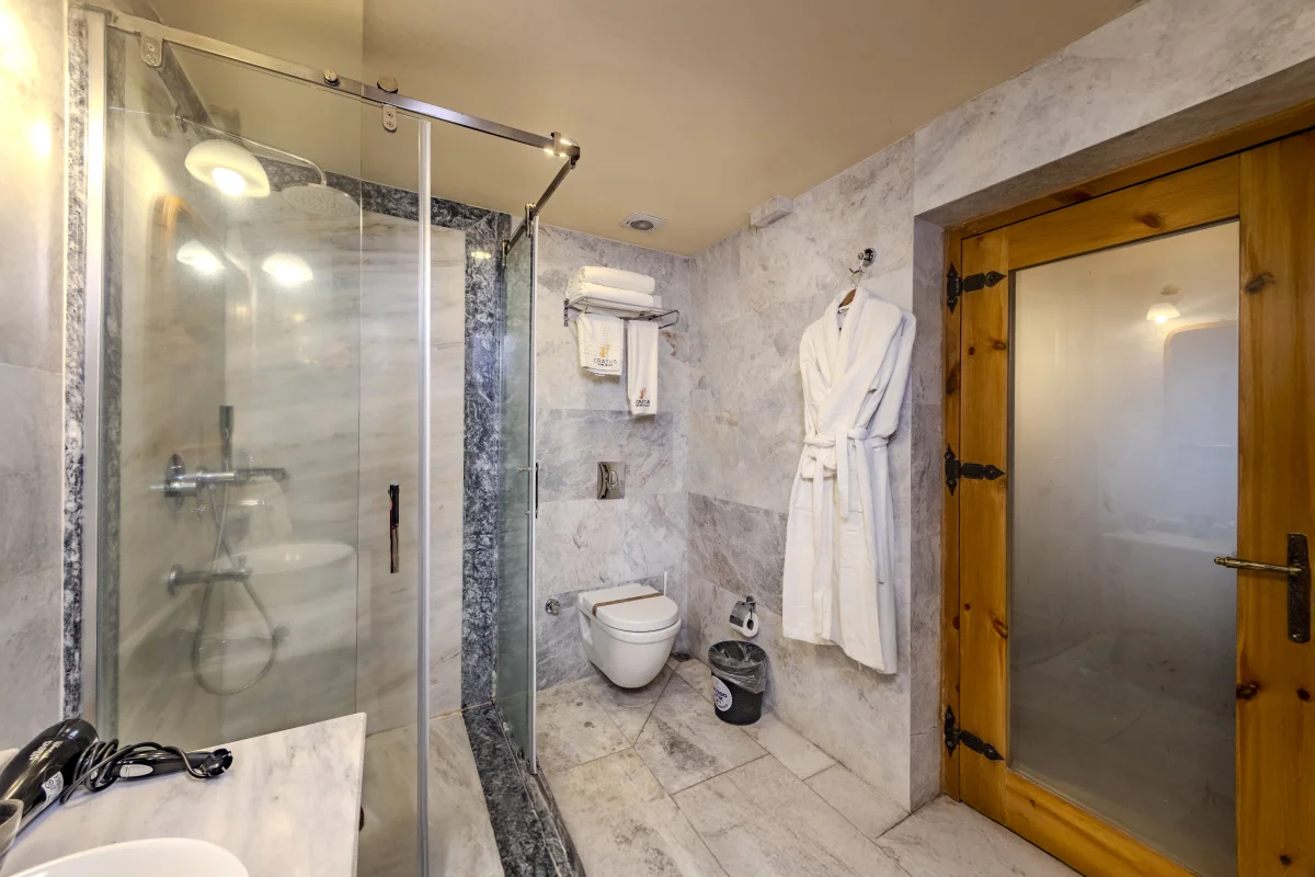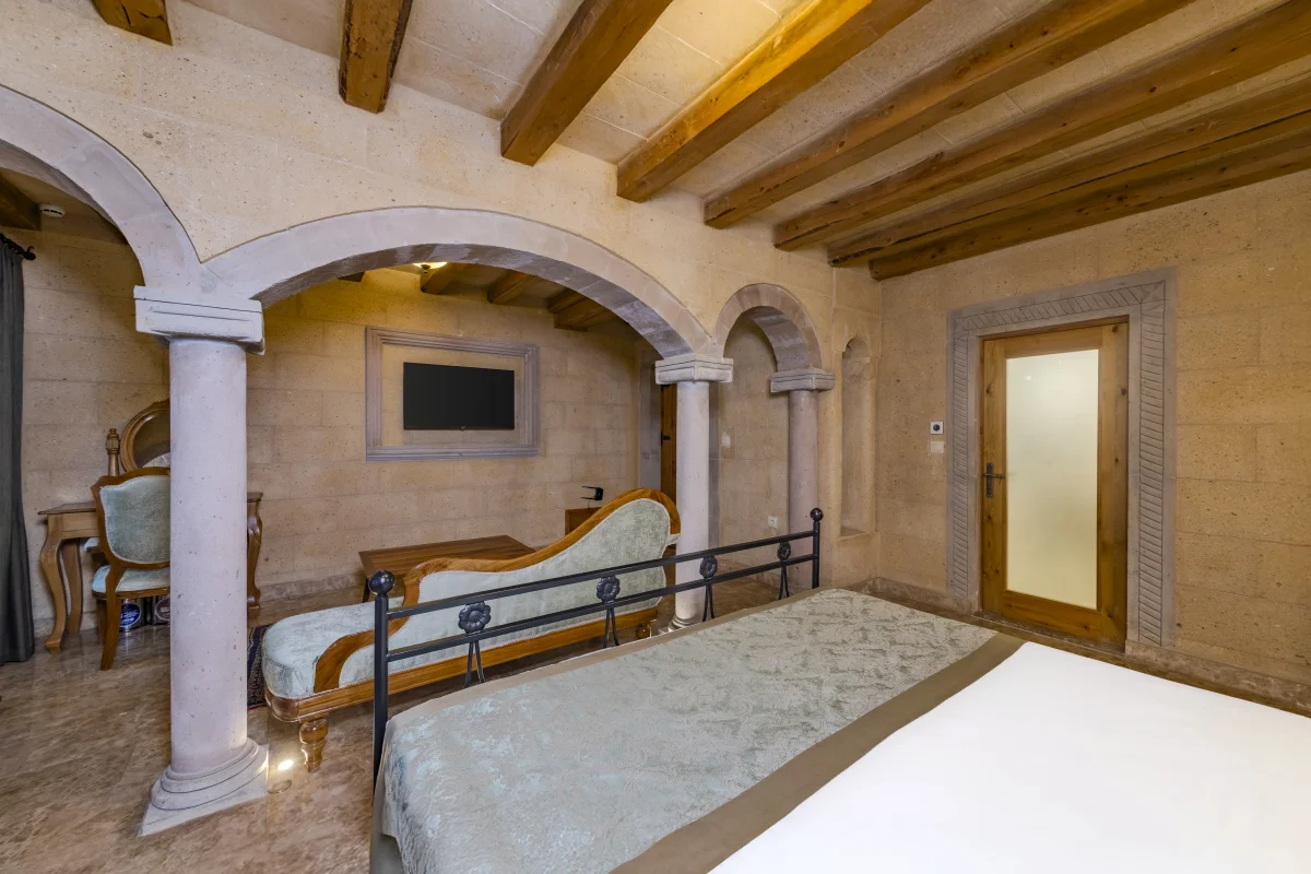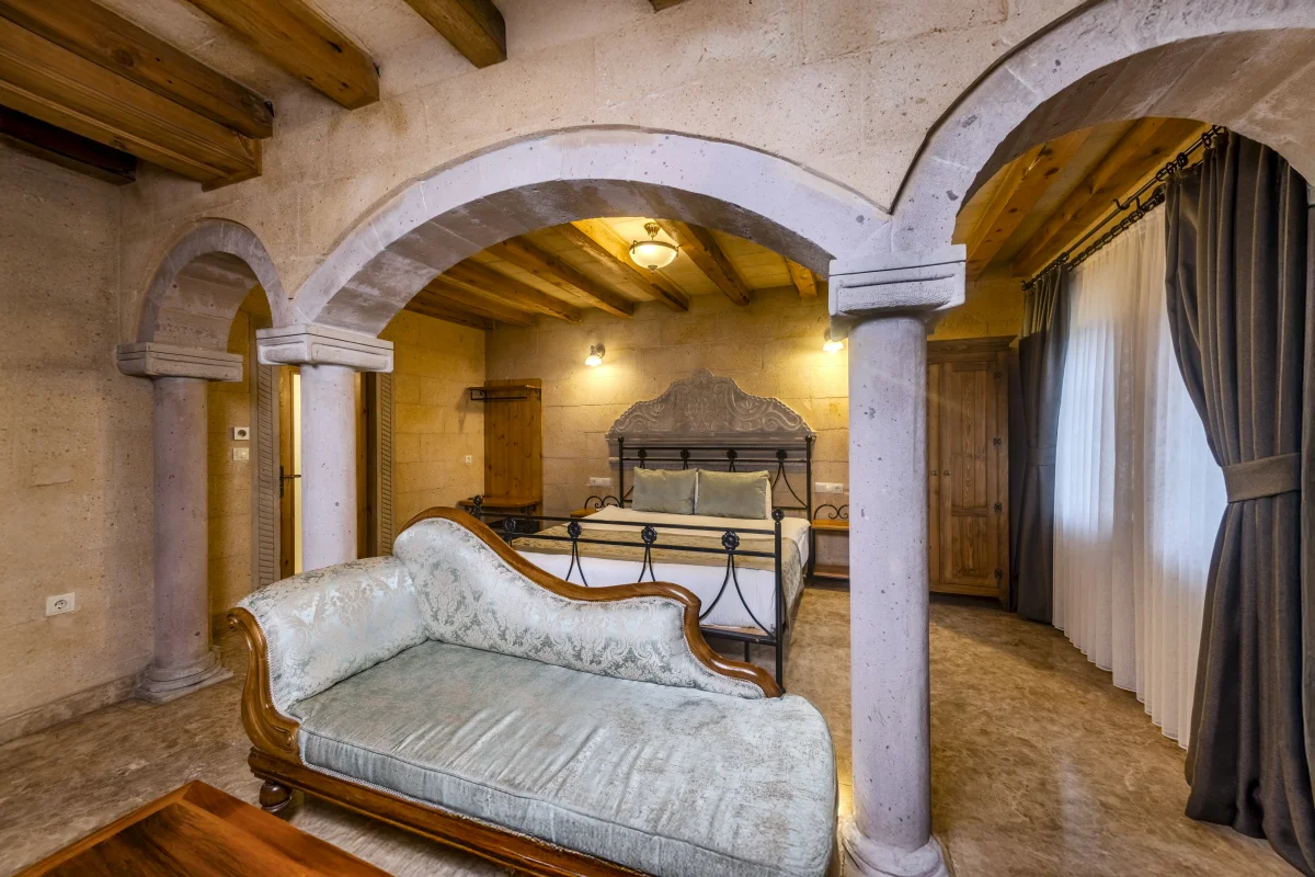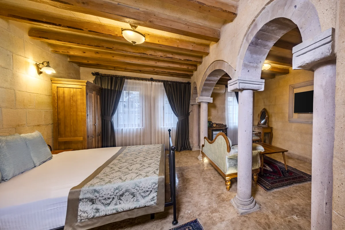 Situé à Göreme, Cratus Stone Palace offre à ses hôtes une expérience d'hébergement impeccable en combinant la texture unique de la Cappadoce avec le confort moderne.Notre établissement dispose de 13 chambres spéciales, certaines creusées dans la roche naturelle et d'autres réalisées avec de la pierre traditionnelle.Notre équipe, qui place la satisfaction des clients avant tout, vous offre une atmosphère intime qui vous fait sentir chez vous.